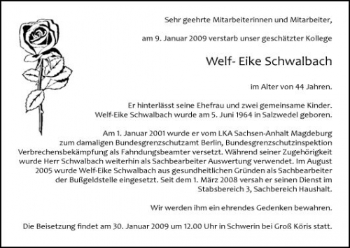 Polizeibeamter Welf-Eike Schwalbach Deutschland